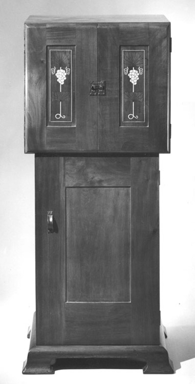 When this Rohlfs “Banquet” came into my inventory it looked as if someone had tried to remove a later coat of bronze powder without disturbing the underlying dark finish. It was fitted with two glass shelves. In The Artistic Furniture of Charles Rohlfs the finish is listed as ebonized and gold-rubbed oak and the glass shelves have been replaced with parts that duplicate the look of the candelabrum as it appeared in a 1907 Rohlfs catalogue, which describes the copper as being polished. A huge photographic detail on page 240 of the book highlights only the new parts. Most of the objects I lent to Boston eventually ended up in museum collections anyway, but the public is seldom aware of the real reasons objects are displayed in museums or how those objects got there—it is not always or even often for reasons of aesthetic or historical merit. For better or worse, art museums large and small would look very different if they gave more than lip service to AAM, AAMD, and ADA1900 edicts. The Metropolitan Museum of Art (among others) still displays objects given by the Jordan-Volpe Gallery, which, according to Tod Volpe, were given explicitly to improve the nascent Arts and Crafts market: Nonnie Frelinghuysen, curator of decorative arts in the American Wing of the Met, was one of the [Jordan-Volpe] gallery’s primary supporters. As a connoisseur of turn-of-the-century decorative arts, she and fellow curator Craig Miller were aware of the gap in collecting that we were attempting to fill … By putting an important art object on display in a major museum, I was able to draw old clients back to the gallery and take new ones to new heights … We continued to donate art to the Met during the 1980s. Great examples of furniture bear our name as do objects and metalwork. For what seemed like a sizeable sacrifice to others, to me, what we were doing made total sense. We were able to sell millions of dollars in art as a result of those simple donations. (Volpe, Tod. Framed: America’s Art Dealer to the Stars Tells All. Ontario, Canada: ECW Press, 2003) Miller is long gone from the Met, but Frelinghuysen continues to hold sway and dealer donations continue to define the collection. Where would their Herter collection be without Margo Johnson? Is Robert Ellison, who recently gave a multimillion-dollar collection of American art pottery to the museum, more or less of a dealer than Stephen Gray? . . . When Jordan-Volpe gave this Stickley cabinet to the Met, Harvey Ellis was thought to have designed it even though the case and the inlay do not reflect his style. Examples of this early cabinet were and are rare, but the icebox-like shape and the inlay, which copies a European design, were never popular with collectors who value aesthetics over rarity. |