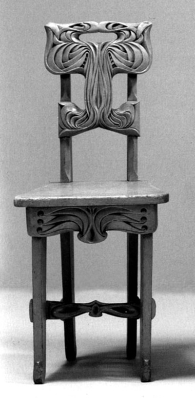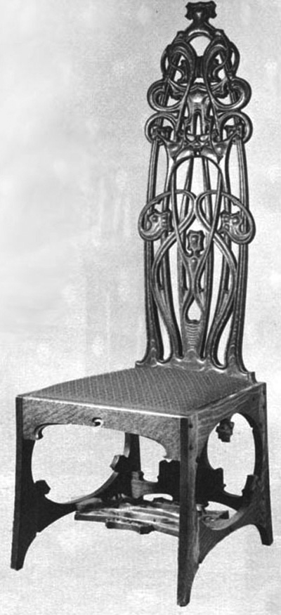 Some have argued that Charles Rohlfs is a representative of the Art Nouveau Movement in America. For example, his iconic carved tall back chair was appropriated (along with several works from the Prairie School Movement) in the Victoria and Albert Museum’s overinclusive recent [2000] Art Nouveau exhibition.