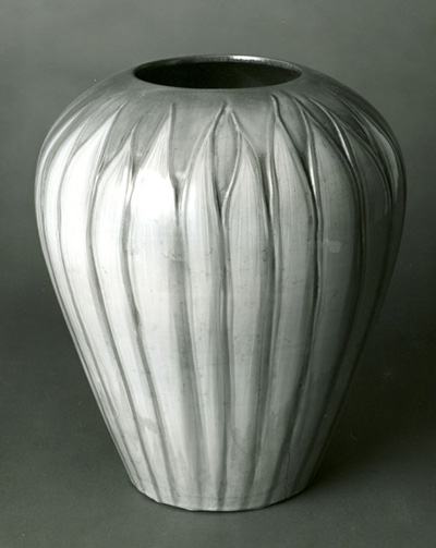 Lacking any documentation, I always assumed this grand Frederick Rhead vase was acquired by Ralph and Jane Whitehead while they were living at Arcady in California and brought to White Pines at Byrdcliffe when they moved to New York permanently. At some point before 1980, the bottom of the vase was smashed out of it and it was crudely restored. Before selling it to (then private) collectors in 1999, the vase was professionally restored, which meant that much of the distinctive flowing glaze had to be overpainted. The vase not only has a new luster, but, after it was sold, it acquired an exciting new history: Now Rhead himself supposedly brought it to Byrdcliffe where he glazed it in the White Pines kilns. Will any curator bother to vet this story by scrutinizing the Byrdcliffe papers? Does the story enhance the value of the vase?