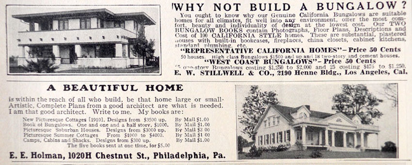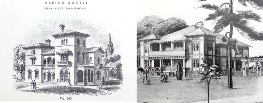 | The risky business of standardizing taste is especially apparent in Craftsman house/home plans. Craftsman houses tend to be the lowest common denominator. These derivative schemes are sometimes simple in the sense of being unpretentious, but, except for some of the Harvey Ellis designs, they should not be considered for their physical beauty or the beauty they might convey to the lives of their inhabitants in the same way one would consider any of the modest houses designed by architects like Raymond Unwin, Joy Wheeler Dow, Charles Barton Keen, or Will Price. In fact, Price’s 1895 Model Houses for Little Money got ideas like Stickley’s across without Arts and Crafts rectitude. Before Price, Andrew Jackson Downing proposed the same principles in The Architecture of Country Houses, which first appeared in 1850. “Craftsman House, series of 1906: Number VIII” is a tepid version of Downing’s “Design XXVIII: Villa in the Italian Style”—even the VIII is appropriated. Downing’s second floor loggia becomes Stickley’s sleeping porch and Downing’s side porch becomes Stickley’s pergola. The stylish 1903 Harvey Ellis Craftsman house, a riff on contemporary Austrian architecture, embodies none of Stickley’s simple ideas and was never built—a progressive, innovative Craftsman farmhouse, which Ellis adapted from a Robert C. Spencer (1864-1953) design in 1903, had to wait until 1993 to be built at Crab Tree Farm.