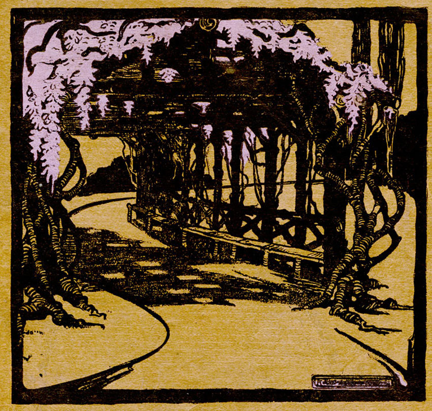 “Gustav Stickley and the American Arts & Crafts Movement” premiered in Newark, New Jersey in close proximity to the Stickley Museum at Craftsman Farms in Parsippany. Though I haven’t been to the Newark Museum in years, I have always had a high regard ––based on Ulysses Grant Dietz’s long tenure as curator and champion of American decorative arts –– for the important collections housed in the 1885 Ballantine House. When I got there this time, I realized I had forgotten the odd proportions of the halls and galleries in the rest of the North Wing; despite the grand height of the ceilings, the narrow width of the spaces is claustrophobic. As I remember my recent visit, the temporary Stickley exhibition wall rose before me as I climbed a narrow flight of stone steps. The mysterious, darkly glowing exhibition entrance was framed by a heavenly light washing over color blowups of cheery cherry blossoms and lavender wisteria blossoms scanned from covers of The Craftsman magazine. The scanning process reproduced the rough texture of the original brown butcher paper cover, which gave the images a tapestry-like quality, leading one to hope for a creative, different interpretation of Stickley’s work. The Barnum & Bailey hyperbole in the handout provided by the Newark Museum dashed that hope: |