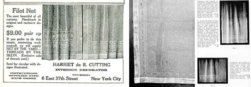 The book has a catalogue section and a section called “Notes on the Catalogue” and a checklist of the exhibition, which thwart its function and utility. The catalogue section has lavish, out-of-numerical-order, full-page color photographs of some of the objects in the show. Some objects rate multiple photographs and long text descriptions while others have the same minimal notations as the numerically ordered checklist. The “Notes on the Catalogue” are tied to page numbers, not catalogue numbers; there are no notes for many objects. The Dallas linen chest gets four pages of analysis and photographs with copious notes while a curtain panel gets just two pictures with no analysis or notes and a reclining chair gets one photo and half a page of text and four notes. Hodgepodge? A sketchy provenance is given in the checklist for a few objects—primarily the model dining room pieces––but not for most. I wanted to know more about the extraordinary curtain panel (catalogue number 88, pages 208 and 209) because the very sophisticated design is so like Prairie School-style designs such as the rugs George Mann Niedecken designed for Frank Lloyd Wright’s Bogk house. Although the border is very similar to a design published in a 1908 Craftsman, the technique and central design are not at all typical of Craftsman darned net curtains, yet there is nothing to tell why the panel was not made by one of the other artisans who produced darned curtains identical to and indistinguishable from Stickley’s. Perhaps newbie Tucker subscribes to the “Don’t ask, don’t tell” rule, but we old-timers could tell the provenance of many pieces and that provenance is itself telling.