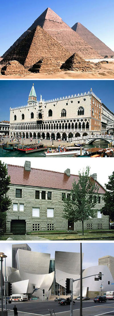 The McPhersons say the Craftsman design team’s goals evolved from early statements of purpose: . “‘The Simple Structural Style of Household Furniture is associated throughout the country with the name Gustav Stickley. The Productions of his workshops embody the principles of the new art which is now developing among us and which promises a long and vigorous existence.’ The principles may be summarized as: . the predominance of the constructive idea . By the first is meant that the purpose for which an object is intended is easily deduced from the appearance of the object, in much the same way as an architecturally good building reveals in its façade the plan of the interior. The second principle is scarcely less important than the first and proceeds from it: any decoration that disguises or impairs the structural features of an object should not be used at all. The third principle dictates that choices of color, texture, and substance be made in the interests of beauty, without regard to the intrinsic value of the material employed.” . This three-layered analysis (quote, summarization, and interpretation) depends on the McPhersons’ highly subjective definition of “the principles of the new art, which is now developing among us.” Their summarization requires that “the principles of the new art” refer to Stickley’s new art and that the “us” in “developing among us” refer to Stickley’s design team. The mere capitalization of “The Simple Structural Style of Household Furniture” in a promotional brochure may hope to, but does not establish Stickley’s name and style throughout the country. I can easily believe “the new art” refers to an existing style and that “us” refers to Americans in general. . I can’t tell if the McPhersons’ break down of principles is what they believe Stickley believed, but I am sure that “architecturally good” is their personal opinion, which trashes the Pyramids, the Doge’s Palace, The Glessner House, and Walt Disney Hall among many other buildings with façades that do not reveal interior plans. . All decorative arts from the world over and for all time before and after Stickley would have to be burned to eliminate any decoration that disguises or impairs structural features. |